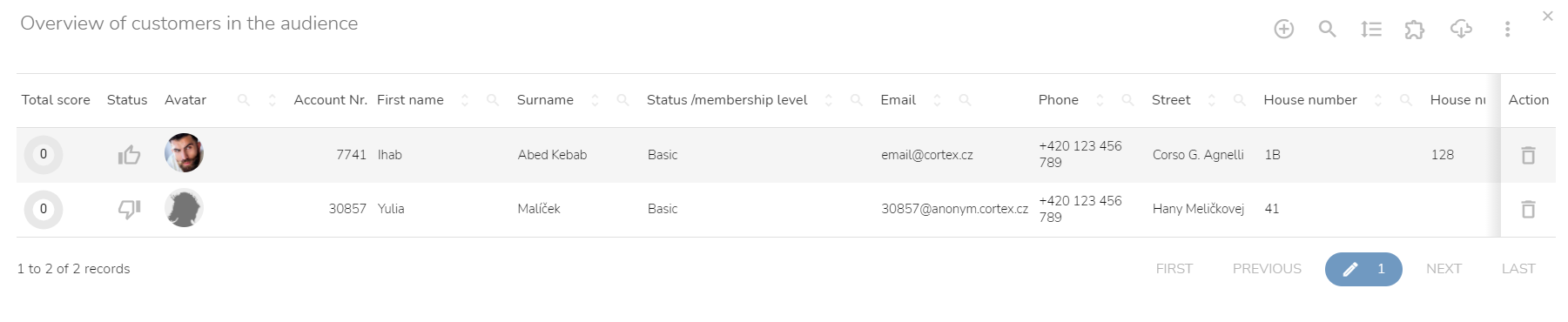 You can delete the customers from the audience by clicking on the "Delete" icon on the right side.