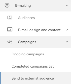 To send a template to an external audience, click on the "Emailing" — "Campaigns" — "Send to external audience." You can use this feature to send the campaign to customers who are not in the CareCloud database.
