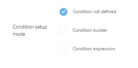 To build a more advanced condition, select the "Condition expression" option. This option enables the creation of custom conditions that are build from variables in the previous settings.