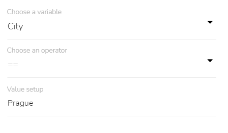 A form will appear. Select a variable from the list of possible variables. Select an operator. Insert a desired value of the property.