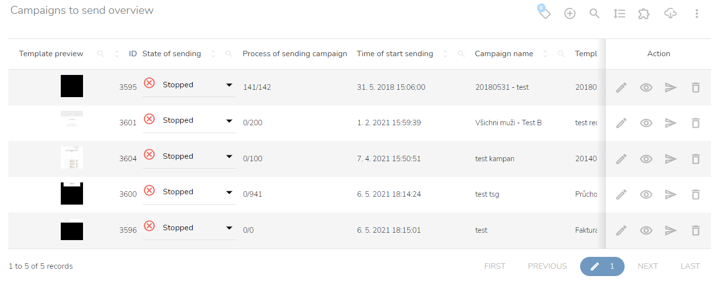 There are four other options that you can do on this page — Edit, Preview, Submit a test message or Delete.