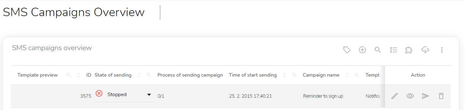 You will see an overview of all SMS campaigns.